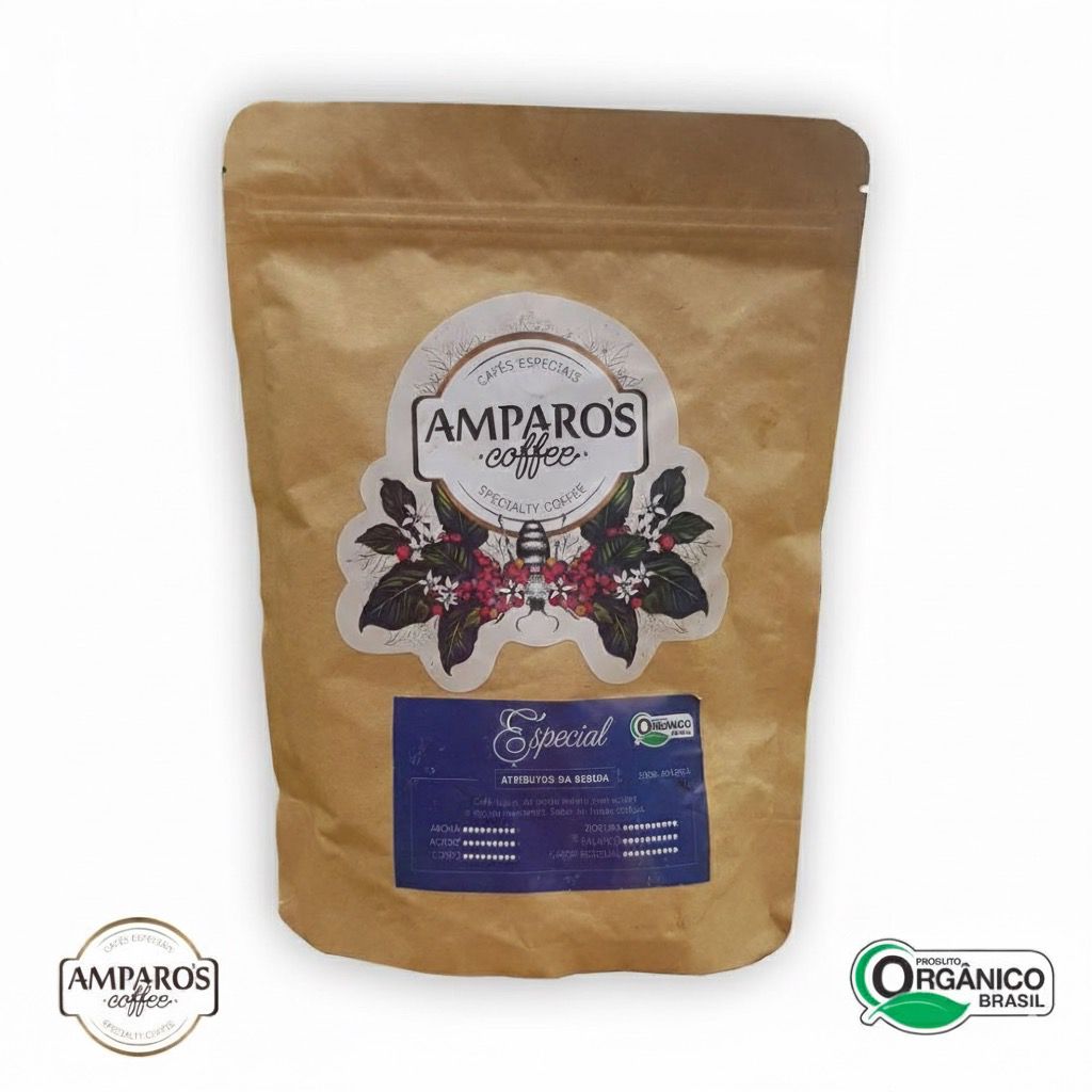 CAFÉ AMPARO’S COFFEE ORGÂNICO ESPECIAL EM GRÃO - EMBALAGEM DE 250 GRAMAS.